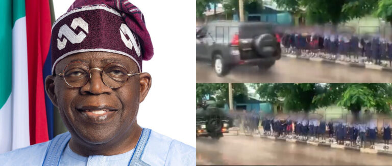 When President Bola Ahmed Tinubu visited Benue State, middle school students welcomed him in the rain while singing the national anthem while singing along the roadside. The students were still in formation despite the downpour and splash through the vehicles, and the scene triggered a wave of online reactions.