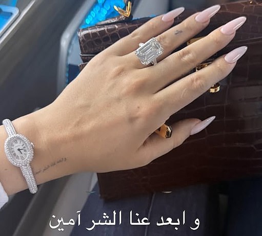 Ronaldo’s partner, 31, shared the image of the flashy stone and added the following words: “And in Arabic, away from evil, away from us, amen”.