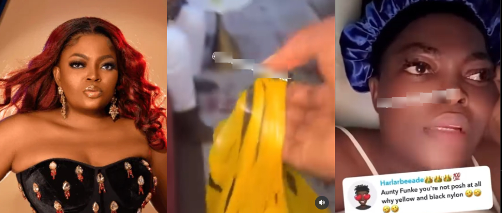 Nollywood actress Funke Akindele shot at a social media critic who mocked her for using “yellow and black plastic bags” to pack food for her guests.