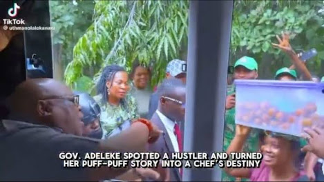 Osen State Governor Ademola Adeleke surprised a Puff-Puff seller when he bought all the snacks for โฆ50,000 at a rally in Osogbo on Thursday and served a chef at the government building.