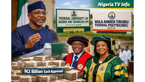 The Federal Government has approved start-up grants of N2 billion each for the Bola Ahmed Tinubu Federal Polytechnic, Abuja, and the Federal University of Technology, Epe, Epe, Lagos State, as part of efforts to support their early operations.