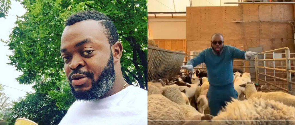 Nollywood actor, Yomi Gold’s recent video shot at a livestock farm in the United States has caught the attention of social media users.