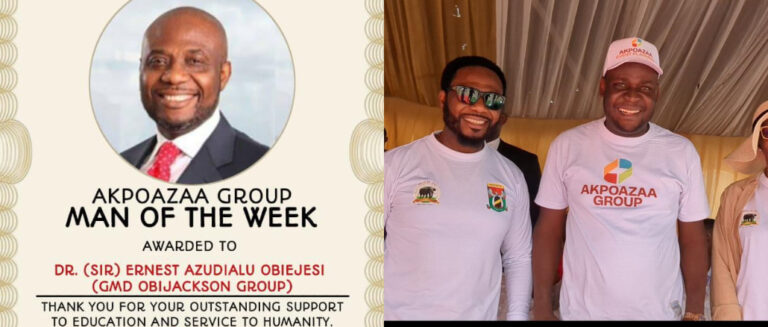 Akpoazaa Group is pleased to announce Dr. (Sir) Ernest Azudialu Obiejesi, Managing Director of Obijackson Group, as the first recipient of its prestigious Person of the Week Award; an honor that recognizes individuals and organizations that have made outstanding contributions to education, healthcare, youth empowerment, industrial growth and overall human development.