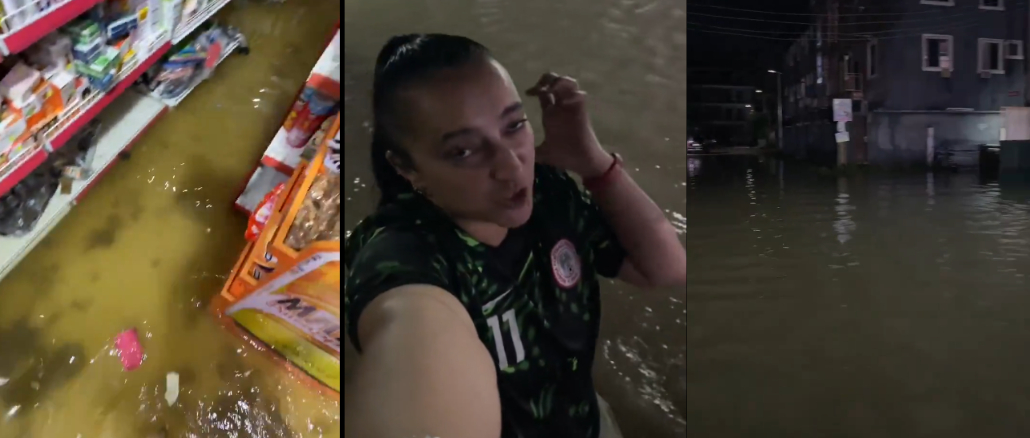 Filmed in Lekki, she was wading by floods on her way to the supermarket, describing the moment as “shocking and surreal.”