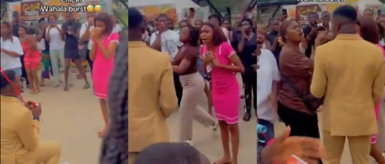 A woman’s Valentine’s Day outing took an unexpected turn when she spotted her boyfriend proposing to another woman in a crowded market.