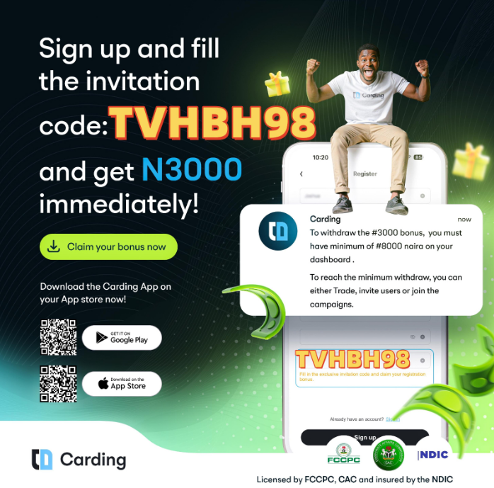 When you register and enter the promo code below, you will get a ₦3,000 Instant rewards in the wallet!